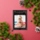 A festive Christmas scene frames your photo in stunning metallic foil. Santa's sleigh and reindeer fly above homes and trees with a moon glowing behind. Fully customisable, you can change the greeting above your photo and the banner greeting that hangs with your photo right below that. At the bottom, you can add your name and the year. This one shines bright with metallics on a tonal black print background. Happiest of holidays!