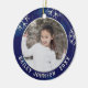 These pretty, personalised Christmas ornaments feature your photo and text on the front and your monogram on the back. They include a blue-and-white constellation pattern made of winter symbols. Use the easy templates to add your picture and text.