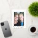 Add a vertical photo and family name to this Christmas photo card. You can even change the Christmas greeting to another saying.