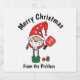 Cute Christmas pickleball Beer Bottle Label with Santa playing pickleball on white background.