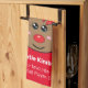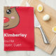 Christmas pickleball with Reindeer Girl, custom text vertical kitchen towel . Great to send to your pickleball partner this Christmas. Red kitchen towel with pickleball Christmas motif