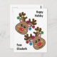 Funny Christmas pickleball folded vertical greeting postcard with cute Reindeers and pickleballs on white background. Customisable text front, back.