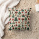 This is a pillow cushion with a Christmas pattern. There is Santa running among various Christmas trees and gift boxes.