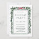This elegant holiday party invitation features a watercolor green pine garland accented with a charming red ribbon bow.