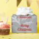 White pine twig branches on soft grey background with Merry Christmas red text.