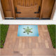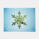Christmas doormat with a collage depicting a beautiful snowflake made of pine branches. A red Christmas ball is hanging on one of the pine branches.