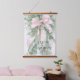 Christmas Pink Satin Ribbon Holly Greenery Hanging Tapestry