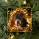 This festive ornament features a handsome pit bull surrounded by pine boughs and Christmas lights.