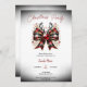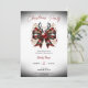 Modern plaid Christmas party invitation featuring bow, buffalo check in black, red and gold. With reindeer antler, diamond stone and stars. Perfect for holiday gatherings, customise easily with your party information.