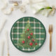 Christmas Plaid Green, White, with Red, Gold Paper Plate
