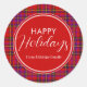 Christmas Plaid Happy Holidays Family Name Classic Round Sticker