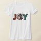 This photo template shirt for Christmas and the holidays allows you to place your family photo within the O in the word JOY, decorated in red and green plaid patterns.