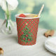Christmas Paper Cups in Red, Green Plaid with Gold Snowflakes.