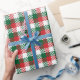 Farmhouse country rustic holiday pattern gift wrapping paper. Traditional, classic plaid buffalo pattern consisting of red, white and green crisscrossed, horizontal and vertical bands.