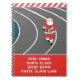Festive Christmas running notebook featuring Santa track-and-field runner. Add name to create a personalized holiday journal or gift.