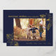 Modern-style Christmas cards with poinsettias framing your horizontal photo. Navy blue colour with gold metallic accents. Merriest wishes!