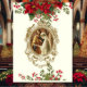 Featuring a beautiful traditional Catholic image of the Espousal of the Blessed Virgin Mary and St. Joseph with red poinsettias and berries. A prayer is on the back for the bride and groom. All text and fonts can be modified.