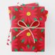 Christmas Poinsettia Floral Festive Print on Red Wrapping Paper Sheet