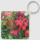 Christmas Poinsettia Original Watercolor Painting Key Ring