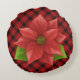Decorate your home this holiday season with this festive round pillow. Featuring an illustration of a Christmas red poinsettia set against a red black check plaid buffalo background, it is sure to bring charm to your space.