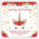 Christmas Poinsettia Unicorn with Red Party Favour Square Sticker