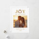 This Christmas card features a design inspired by the traditional Mexican embroidery style, where a vibrant poinsettia wreath is combined with ornamental details that evoke the delicate craftsmanship characteristic of this aesthetic. The composition incorporates the phrase Joy to the World, integrated in a balanced and harmonious way alongside vivid colors and floral forms that bring warmth, energy, and a uniquely festive charm. The design also includes a space for a personalized photo, creating a visually rich piece that blends tradition, color, and a personal touch.