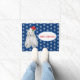 Doormat shown with a blue background colour with a cute festive Christmas polar bear print.