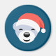 Christmas Polar Bear in Red Hat on Blue Magnet