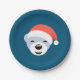 Christmas Polar Bear in Red Hat on Blue Paper Plate