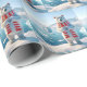 A polar bear wearing a red and white striped scarf stands on an icy landscape, holding its paws in the shape of a heart