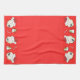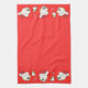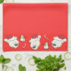 Cute holiday cookie with a polar bear in Santa cap. Dancing snowman and candy cane on a cheery red background