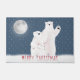 Tiny white starry snowflake pattern on winter blue background with red Merry Christmas text and cute polar bears.