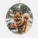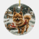 Christmas Pomeranian Reindeer Dog Ceramic Ornament