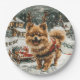 Christmas Pomeranian Reindeer Dog Paper Plate