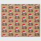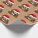 Cute happy Christmas / Santa poo emoji christmas emoji with red Santa hat on light brown background Christmas wrapping paper.