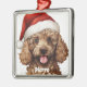 CHRISTMAS POODLE PUPPY DOG WITH SANTA HAT METAL ORNAMENT