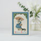 Vintage Christmas Postcard This adorable old time Christmas card image features a girl holding an umbrella in one hand and cuddling a kitten or kitty cat, while a small dog or ouppy pulls at her winter coat. She is also carrying a basket filled with flowers and standing under an arc of holly. Snowflakes are gently falling down around her.