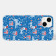 Blue red and white Christmas pattern case, featuring cute birds singing and deers prancing over gifts in the snow by Sarah Trett.