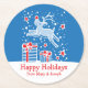 Share the fun of the Happy holiday season with this fun Christmas reindeer prancing over Christmas gifts personalised paper coasters. Great coasters for a Christmas holiday gathering or Happy holidays Christmas parties. Personalise with your family name. A great addition to your Christmas festivities. Original art and design by Sarah Trett.