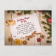 Beautiful custom Christmas postcard depicts a cute angel surrounded by pine branches and a variety of decorations. It features a Christmas Prayer for You taken from Bible Verse Romans 15:13, "May the God of hope fill you with all joy and peace as you trust in Him, so that you may overflow with hope by the power of the Holy Spirit."