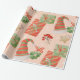 Pink Christmas Wrapping Paper with Baubles, Hat, Presents, Berries, and Holly.