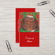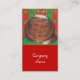 A happy tortoiseshell cat (resembling a christmas pudding!) sits on a green cushion against a red and green holly leaf patterned background. Business card template with a customisable for you to personalise with your own text, message or images. Image created from an original coloured pencil drawing.
