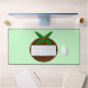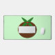 This awesome desk mat features a tasty looking chocolate brown coloured Christmas pudding with a sprig of holly on top. There is white text on the pudding that resembles frosted icing and reads "Merry Christmas". The text is customisable so you can include your own message.