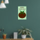This fun festive poster features a tasty looking chocolate brown coloured Christmas pudding with a sprig of holly on top. The background is a pale shade of green and there is brown text that reads "Merry Christmas".