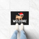 A custom light brown pug Christmas doormat for the holiday season. Easily personalise with your family name and year.