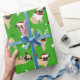 Christmas Pugs Green Wrapping Paper, Cute Pug Dogs in Festive Holiday Outfits.