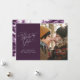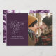 Christmas purple modern script photo where tree tops glisten simple elegant holiday card. With trendy script and snowy winter forest scene.