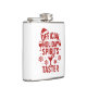 The flask itself is fine. It’s a cheap flask, obviously bought in bulk, however am prepared to overlook that. Given that it is a personalized item, I would have liked to have seen gift boxing instead of the generic packaging. Terrible printing, and/or quality. It’s a cheap, tacky vinyl. It is not cut straight and is also applied in a way that it is overhanging the bottom, causing the glue to catch on items and it will eventually roll and tear, damaging the wrap.