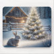 Christmas Rabbit With Glowing Tree Mouse Pad