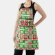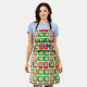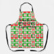 This apron has a mid-century modern Christmas design of rounded rectangles with holes and small mazes in the holes.